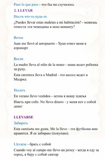 Для всех, кто только начал учить испанский язык или уже имеет уровень до В2. В сборнике вы найдете глаголы во всех их значениях, с примерами в разных временах.